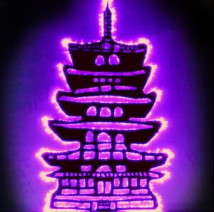 ▼国宝・瑠璃光寺五重塔を模したモデルをプラズマ処理した様子